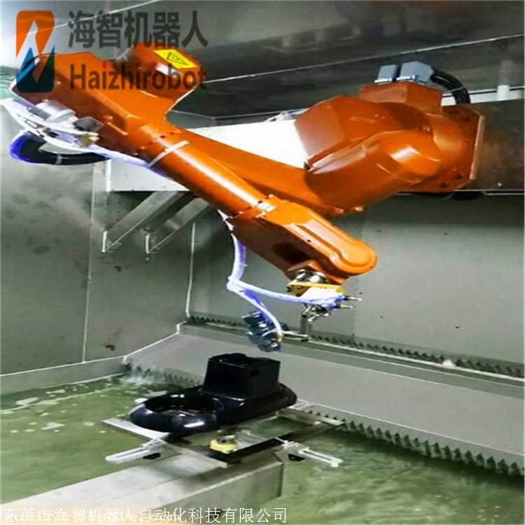 3,自动涂装机器人设备工作范围大,灵敏度高,速度快,可对五金,塑料,家用电器,陶瓷,原木等中小型产品开展自动涂装。